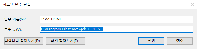4. 변수이름은 JAVA_HOME 변수 값은 위에서 jdk를 설치 하였던 폴더로 저장합니다.
