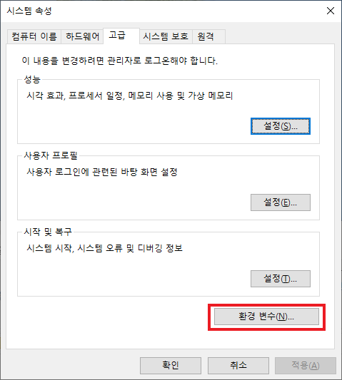 설치가 완료된 이후 환경 변수를 설정해 주어야 합니다.