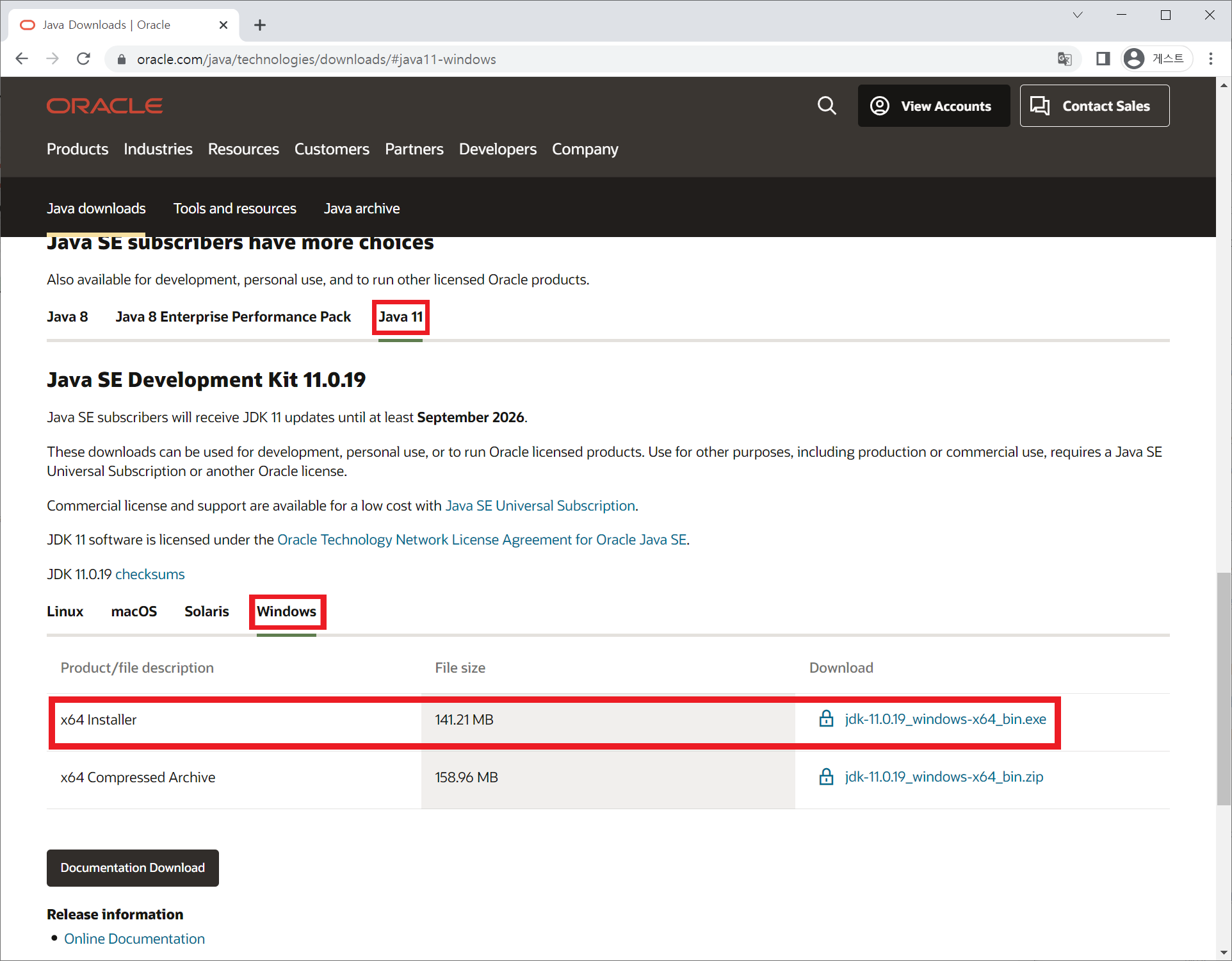 저는 Java 11을 다운로드 받았습니다.