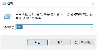1. window키 와 R 키를 눌러 cmd 입력하여 cmd창에 진입합니다.