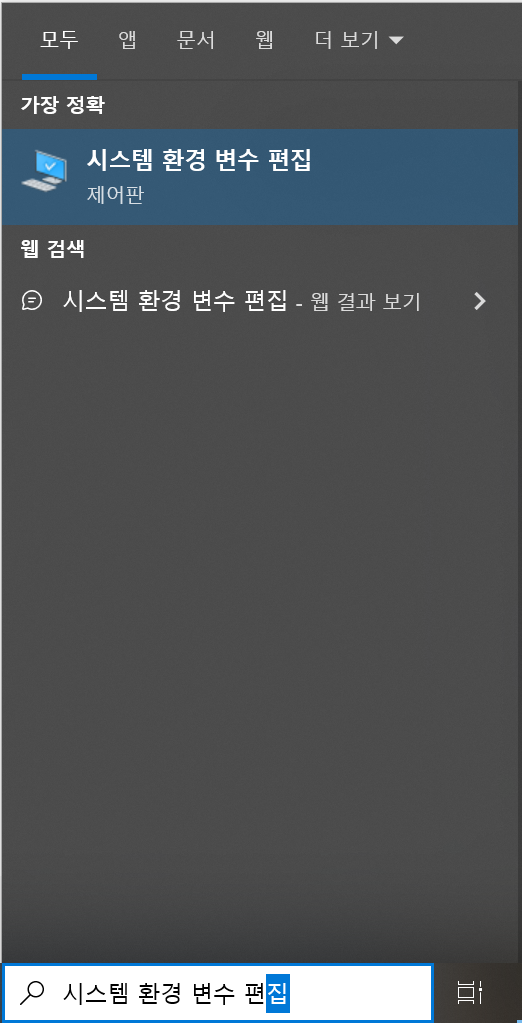 1. window키를 눌러 '시스템 환경 변수 편집' 검색합니다.